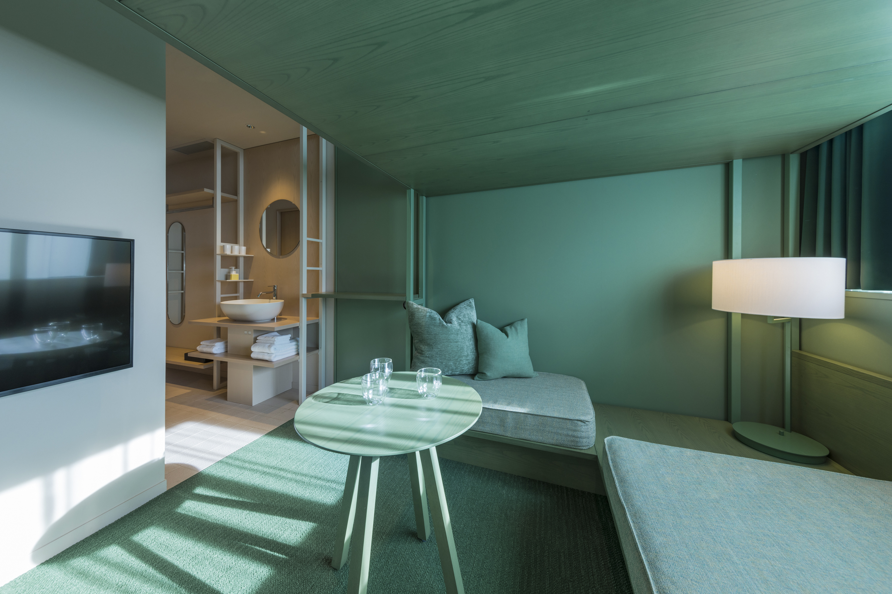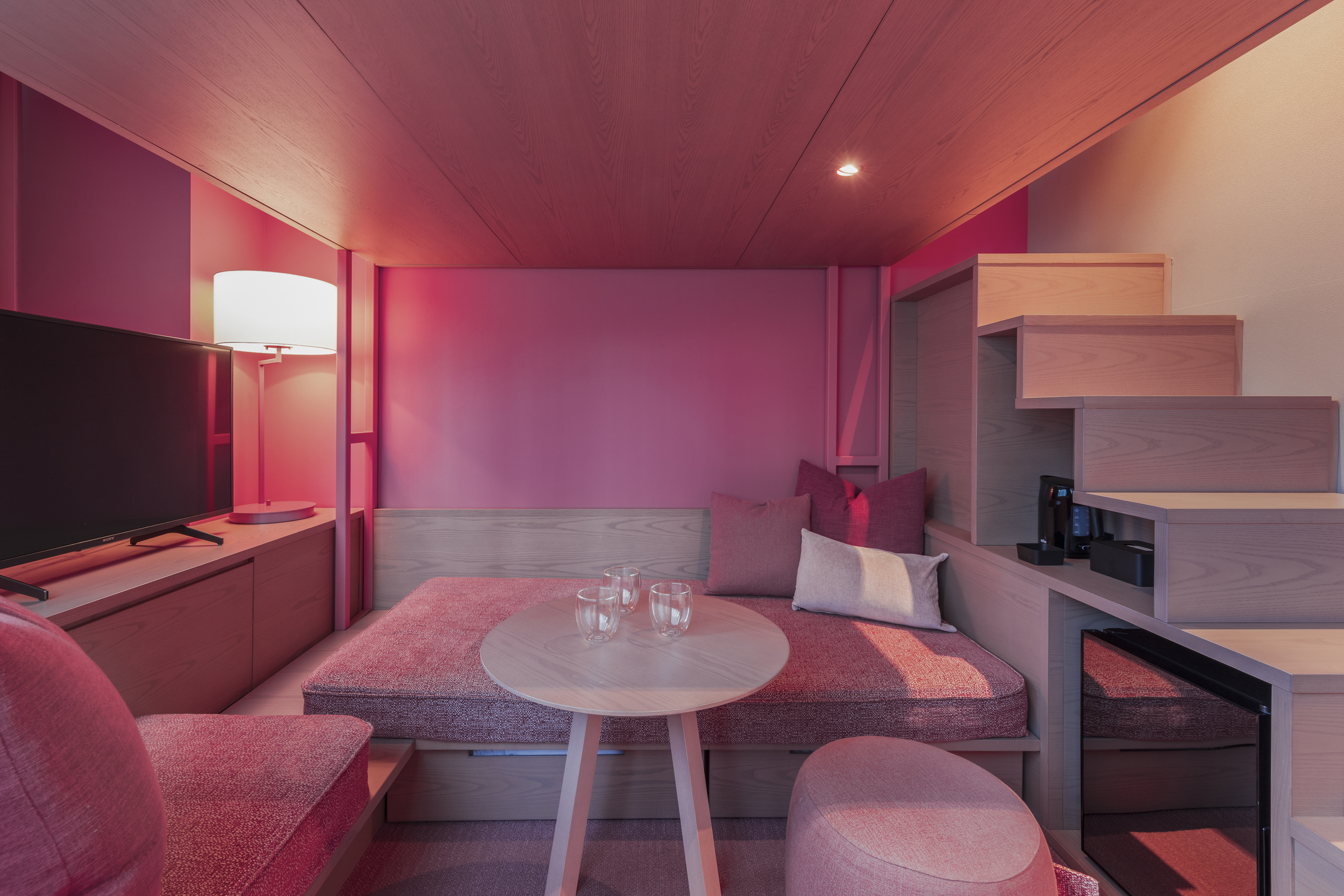 コンサートだけでなくホテルステイも楽しめそうなカラフルな内装が目を引きます。